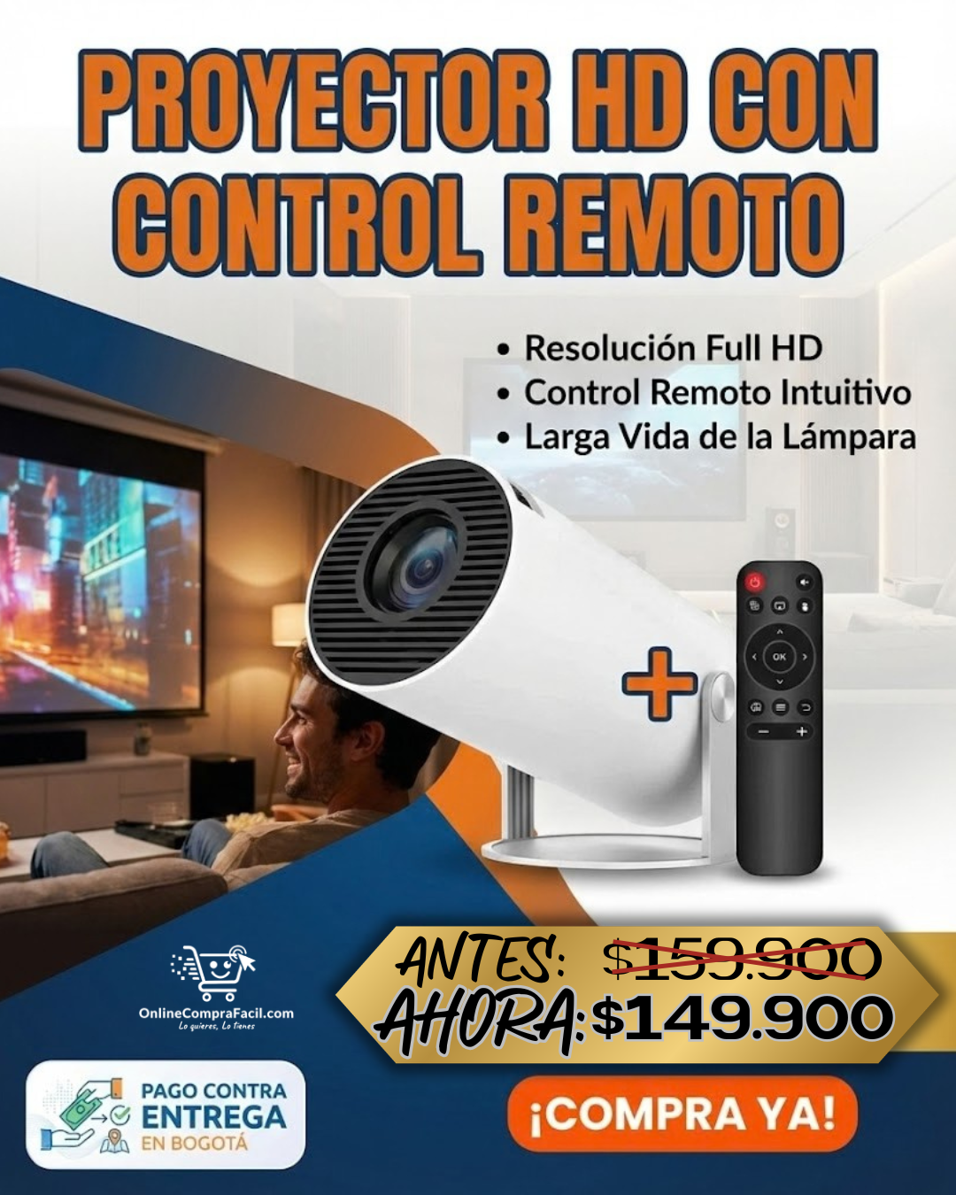 Proyector HD con Control Remoto